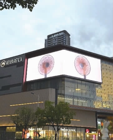 左图:近日,长沙商场外大屏滚动播放风扇、空调视频,市民调侃“望扇止热”。 通讯员 供图