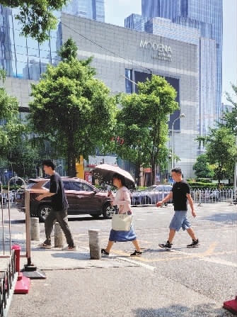右图:盛夏的长沙,市民轻装上阵。 尹可可 摄