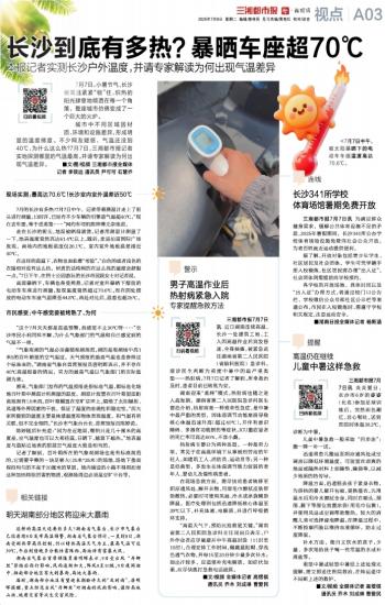 7月的长沙有多热?7月7日中午,记者带着测温计走上了街头进行测量。13时许,已经有不少车辆的引擎盖气温超40℃。“现在去车里,等于进蒸笼……”网约车司机陈师傅无奈地说。