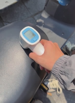 高温暴晒下,车辆也备受煎熬。记者对室外暴晒下摆放的电动车车座进行测量,发现温度竟然超过70.6℃。而在阴处摆放的电动车车座气温降至44.8℃。两处对比后,温差也超25℃。