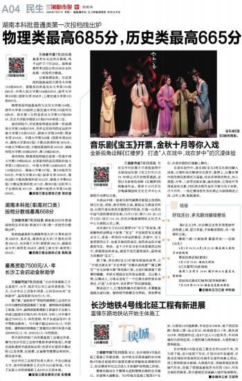 三湘都市报7月20日讯 湖南省2025年普通高校招生本科批(职高对口类)第一次投档分数线出炉。