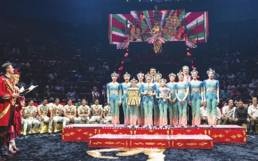 7月20日,在俄罗斯莫斯科,湖南省杂技艺术剧院演员获奖后合影。当晚,“偶像-2025”国际马戏艺术节各奖项评选结果在俄罗斯首都莫斯科国家大马戏剧院揭晓。来自中国杂技团的《驭风凌霄——男子集体车技》获得专业评委会金偶像奖。来自湖南省杂技艺术剧院的《戏韵春苗》获得专业评委会铜偶像奖。 新华社 图