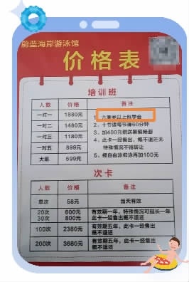 值得玩味的是,陈教练表示,宣传单上“包会”有条件,如“6周岁以上包学会”“10节课每节60分钟”“此卡一经售出概不退还”等。“我们并未承诺不教会就全额退款。”他强调,“每个孩子的接受能力不同,不能全怪游泳馆。我们给了方案,一是等明年孩子大一点了,我这里安排教练再给你补几节课,二是加300元,一直游到8月底,教练有时间就过来指导。”