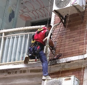 在他看来,高空作业需要细心、专业与耐心,得考虑方方面面,“尽量减少承重,一方面担心高空坠物,另一方面在高空作业时通道狭窄,东西太多可能会卡住,更重要的是,负重太多还会增加掉落的风险”。