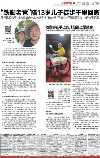 “铁脚老爸”陪13岁儿子徒步千里回家