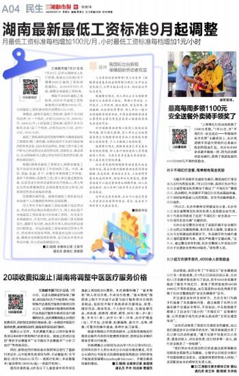 湖南最新最低工资标准9月起调整