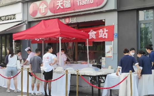 8月3日,记者走访发现,曾经只做高端餐饮的品牌,如今在街角支起了简易展台、推起了移动餐车,吸引着市民朋友们驻足选购。