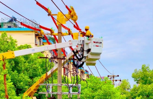 局地将达37℃以上,湖南省气象台8月8日继续发布高温黄色预警。当日,国网长沙供电公司带电作业班顶着烈日,在芙蓉区恒达路10千伏教师村线路开展带负荷直线杆改耐张杆并加装柱上开关作业,保障沿线约2800户居民高温期间可靠用电。7月以来,已累计开展带电作业消缺及抢修1283次,出动特种车辆800余车次、人员3000人次,实现供电“零影响”。