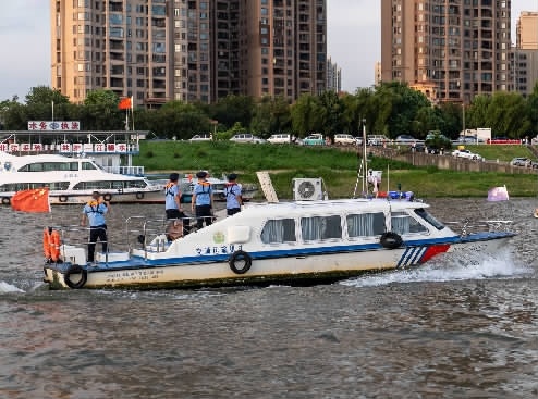 8月8日,湘江长沙三汊矶大桥段,执法人员进行巡航。当天,长沙市交通运输综合行政执法支队联合市公安局治安支队等部门开展常态化专项联合执法行动。行动共出动5艘执法艇、30余名执法人员,重点整治航道内违规游泳、水上运动等行为。为应对暑期水上活动增多的情况,执法部门已将专项行动时间延长至每晚9点半。