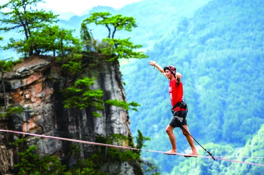 至今,张家界已连续举办八届黄石寨高空扁带赛,吸引众多国内外扁带爱好者在绝壁间一决高下。■据新华社
