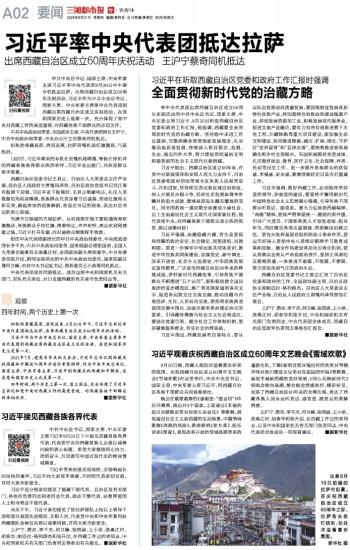 王沪宁、蔡奇、李干杰、何立峰、张国清、王小洪、洛桑江村、胡春华和张升民,在西藏工作过的老同志,以及中央和国家机关有关部门负责同志、中央代表团全体成员一同观看演出。 ■据新华社