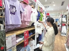 “这款Chiikawa联名童装最大码是160cm。”优衣库CFC富兴时代广场的工作人员介绍,“一般童装的价格普遍为成人服装的7—8折。比如这款联名童装款和成人款都有售卖,两款花纹不同,童装款79元一件,成人款99元一件,童装款的销量更好一些。”