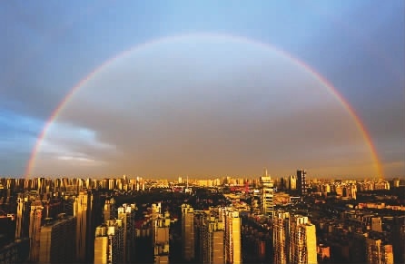 8月25日傍晚,长沙。下班路上有彩虹,一路晚霞火烧云,双倍好运。