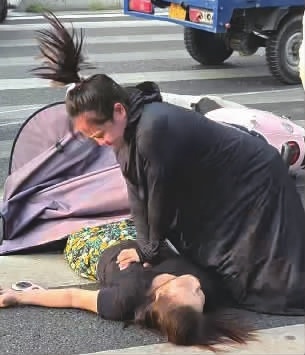 衡阳街头,女子骑电瓶车与三轮车相撞后倒地昏迷,路过的衡阳市协诚医院医护工作者姚琴当即跪地施救,为其进行心肺复苏近10分钟,直到路过的白衣女生接力施救。两人跪地上演生死营救,持续至120救护车赶到现场。