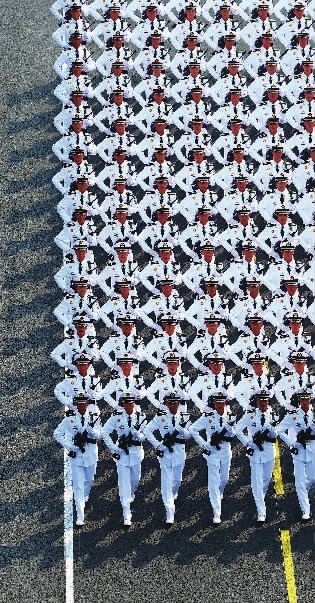 ●海军方队 受阅队伍中平均年龄最小的方(梯)队