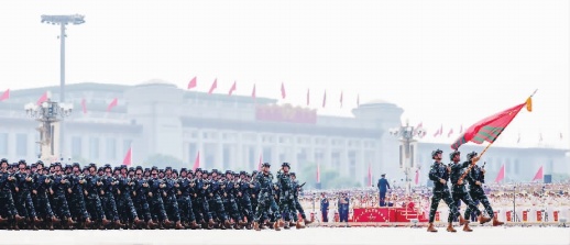 护卫党旗、国旗、军旗,拉开阅兵分列式帷幕