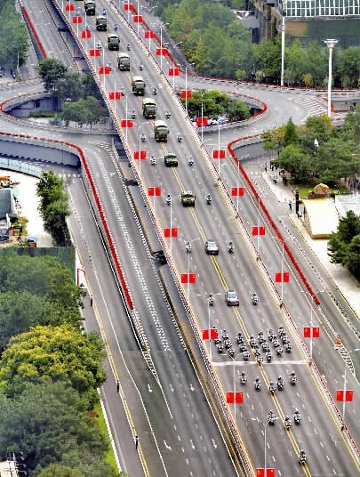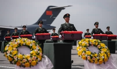 9月12日,第十二批30位在韩志愿军烈士遗骸及相关遗物,由我国空军运-20专机从韩国接回至辽宁沈阳,回到祖国怀抱。上图:在沈阳桃仙国际机场,礼兵将殓放志愿军烈士遗骸的棺椁从专机护送至棺椁摆放区。下图:运送志愿军烈士遗骸的车队经过沈阳青年大街。