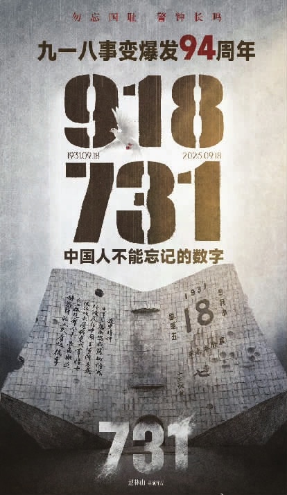 2025年9月18日是“九一八”事变爆发94周年纪念日,全国各地通过多种形式开展纪念活动,缅怀先烈,铭记历史,弘扬抗战精神。当日,电影《731》全球上映,综合票房超过2.56亿元。