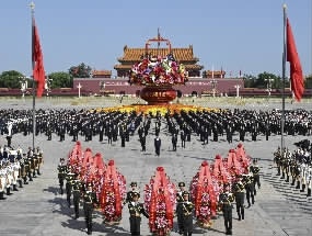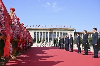 9月30日上午,党和国家领导人习近平、李强、赵乐际、王沪宁、蔡奇、丁薛祥、李希、韩正等来到北京天安门广场,出席烈士纪念日向人民英雄敬献花篮仪式。