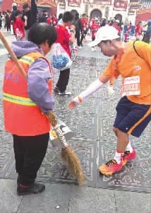 彭红涯今年52岁,这是她在湘雅所的第十九年。十九年来,她和同是环卫工人的丈夫风里来雨里去,相互扶持。她有些激动:一是第一次亲眼见跑马拉松,二是她心里清楚——等到比赛结束,才是他们真正上场的时候。