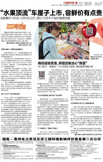 “当前车厘子价格高是因为空运成本较高、上市初期产量有限和早期车厘子品质更高。随着11月中旬海运车厘子陆续到港,市场价格将出现明显回落。到12月上旬,2J、3J等主流规格价格有望再降10%—20%,届时将真正迎来车厘子消费旺季。”业内人士指出。