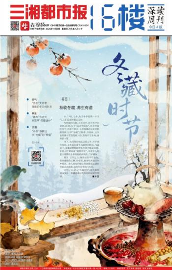 立冬过后,进入“冬藏时节”,愿大家都健康快乐,带着对来年的向往和温暖的期待。 ■朱蓉