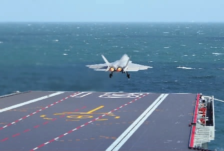 日前,海军福建舰开展入列后首次海上实兵训练,完成任务后返回三亚某军港。这是歼-35舰载机弹射起飞。