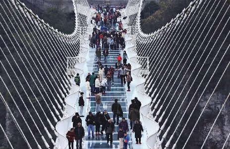 12月7日,游客在张家界大峡谷景区体验高空玻璃桥。冬日的大峡谷阳光明媚,中外游客纷至沓来,体验“云端漫步”的惊险与刺激。