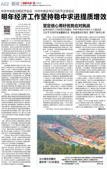 明年经济工作坚持稳中求进提质增效