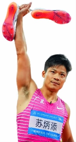 2015年,苏炳添在钻石联赛美国尤金站中跑出9秒99,成为首位突破10秒大关的中国人。2018年,苏炳添在世界挑战赛马德里站百米决赛中跑出9秒91,追平亚洲纪录。2021年举行的东京奥运会上,苏炳添在半决赛上跑出9秒83,打破亚洲纪录。今年11月20日,苏炳添在十五运会的男子4X100米接力决赛中,跑完了自己运动员生涯的最后100米,他和广东队的队友获得第四名。