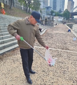 捡垃圾的过程中,常有游客驻足观看。有外地游客感到意外:“邵阳也有这样的志愿者。”还有从美国、新加坡回来的游客告诉他,当地老人也会自发清理社区环境,“他们说邵阳有我们这样的人特别好,有空也要来加入。”