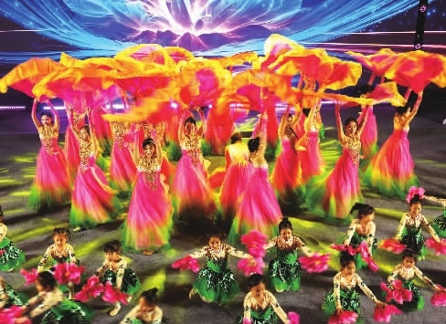 12月23日晚,嘉禾县双拥广场,参赛队伍在表演节目。当晚,2025年湖南冬季“村歌”展演暨声动嘉禾歌王总决赛在此举行,来自陕西、湖南等地的非遗代表性项目传承人与本地歌手同台献艺,呈现了一场展现民俗风情的乡村文化盛宴。