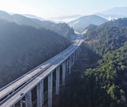 12月26日,G7221衡(阳)南(宁)高速城步至龙胜(湘桂界)段(简称“城龙高速”)正式通车。将助力湘西南地区融入粤港澳大湾区发展。右图为车辆行驶在城步苗族自治县丹口镇花龙村地段。