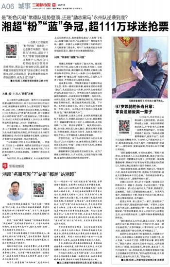 湘超“粉”“蓝”争冠,超111万球迷抢票