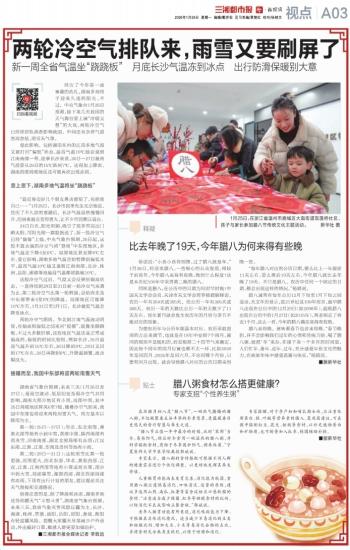 “每年腊八对应的公历日期,要么比上一年提前11天左右,要么推后19天左右。今年腊八就比去年晚了19天。不只是腊八,农历中任何一个固定的日期,都会出现这样的情况。”杨婧说。
