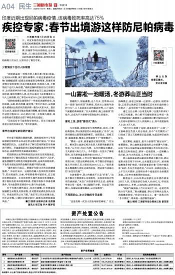 疾控专家:春节出境游这样防尼帕病毒