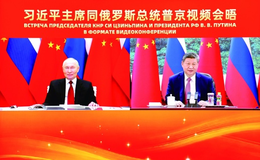 2月4日下午,国家主席习近平在北京人民大会堂同俄罗斯总统普京举行视频会晤。