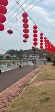 现在生活富足了,但年味却淡了些,很多年轻人觉得在外过年也一样。“在村道上挂满灯笼,我把视频发在村群里,在外的乡亲们看了都说‘要回家了’。”常意初说,千盏灯笼不仅点亮了村道,更凝聚了人心。如今的金狮村,有两个广场舞场地,每晚都有村民相约跳舞、围着大铁锅烤火聊天;村里山庄建好了,30多亩的大水塘里种着荷花,留守村民就近务工赚钱的机会越来越多。