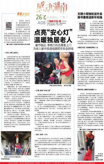 2月8日,临近年关,郴州城里的年味伴着腊香飘散开来,62岁的李艳兰比平日更忙碌了。安排好家事,她便匆匆出门,春节前,还有最后几户独居老人的家庭电路等着她和志愿者改造。“过年家里用电多,得让他们用上安全电、亮堂灯,过个安心年。”清点着工具箱里的电线、开关,李艳兰的话语朴素而坚定。