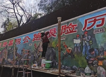 画面上,人背马驮翻越雪山、打通嘎隆拉隧道、跨越泥石流和塌方区……艰苦卓绝的场景被一一呈现。“这里过去没有公路,村民们靠走小路,还要翻越4000多米的雪山,太不容易了。”宁敏帆感慨道,虽然墙画只表现出“冰山一角”,但“还是有意义的”。