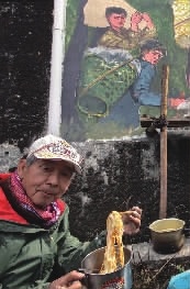 “要画出当年的真实场景,不能凭空想象。”宁敏帆介绍,“只有时间才能酝酿出带有感情的画作,蜻蜓点水式的旅游观光只会让作品停留在最浅薄的阶段。”正是这份敬畏之心,让他和学生顶着高原的寒风,在脚手架上站立了整整两个月。