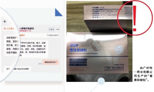 此外,中华老字号广药集团店客服提供的一款“雪莲保健贴”显示为由广州特一药业有限公司生产,执行标准为T/JXJK 005-2022,记者查询后发现,该标准是由江西省消毒产品行业协会发布的团体标准《敷贴布包类保健用品生产技术规范》,产品为保健用品,并非药品和医疗器械。