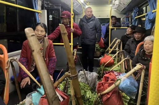 “老人们要是乘坐8时50分的车回来,说明菜早早卖完了,我替他们高兴。发现有人没赶上这趟车,就会担心他们生意不好。”驾驶员袁刚介绍,线路上的司机总会在合规范围内把车往前多开几百米,让挑着重担的菜农少走一段路;大家记得村里上学的每一个孩子,有人没赶上,也会下意识多等两分钟。“我没想过要换线路,乘客都把我们当自家人,辛苦也值得。”袁刚说。