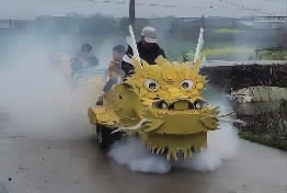 三湘都市报3月20日讯 二月二,龙抬头。3月20日清晨,宁乡回龙铺镇回龙铺村成片的菜田还笼罩在未散的晨雾中,一条金色的龙突然从村道尽头“腾云驾雾”而来。龙身长5米,龙嘴喷出袅袅白烟,龙背上坐着欢呼雀跃的孩子。驾驭着金龙的,是32岁的宝爸万宇,身旁笑得眼睛弯成月牙的5岁男孩用稚嫩的声音喊道:“爸爸,我们回龙铺真的有龙了!”