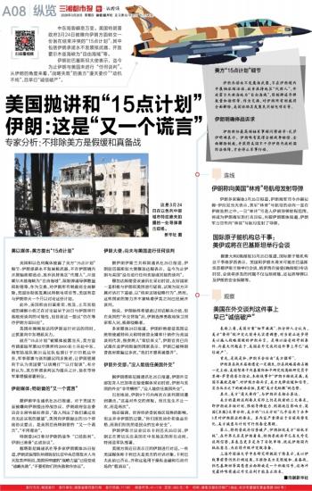 美方的最新谈判要点实际上仍是战前的三大要求,即伊朗放弃核计划、限制导弹能力、削弱地区影响力。英国《卫报》文章分析,美方的“15点计划”几乎沿用了去年5月对伊朗提出的要求,其内容严重滞后于当前局势变化,美方诚意与计划可行性备受质疑。