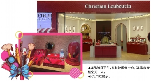在长沙国金中心的CL精品鞋履门店,周末的下午,鲜有顾客进店选购,少量口红和香水,被放在展台角落位置。门店店员见记者在口红盒前驻足,便热情地介绍着,“我们门店售鞋履为主,还会搭售一些经典畅销款的香水、口红,像女王权杖系列的经典热门色号都在这。”她说,如果有其他需要的色号,可以去一旁的CL彩妆专柜看看,“我们彩妆线上小程序4月15日就要关闭了,我们门店也将于当日撤店。”