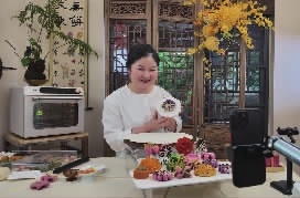 一排排“盛开”的郁金香、牡丹花、玫瑰花摆在桌面上,栩栩如生,这些用面团做的“花”式酥点,吸引了全网20万人的关注。