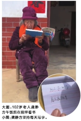 虽然现在已102岁,但龚静方口齿清晰,“我每天早上起来吃完饭以后,就看看书、写写字,没事的时候就看电视。 ”