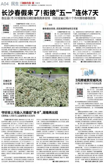 三湘都市报4月14日讯 4月14日,记者获悉,2026年长沙义务教育阶段学生将迎来春假。