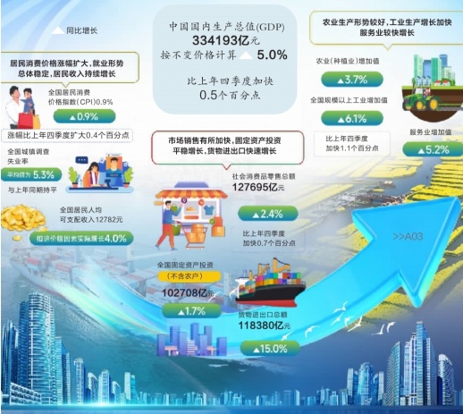一季度我国GDP同比增长5.0%
